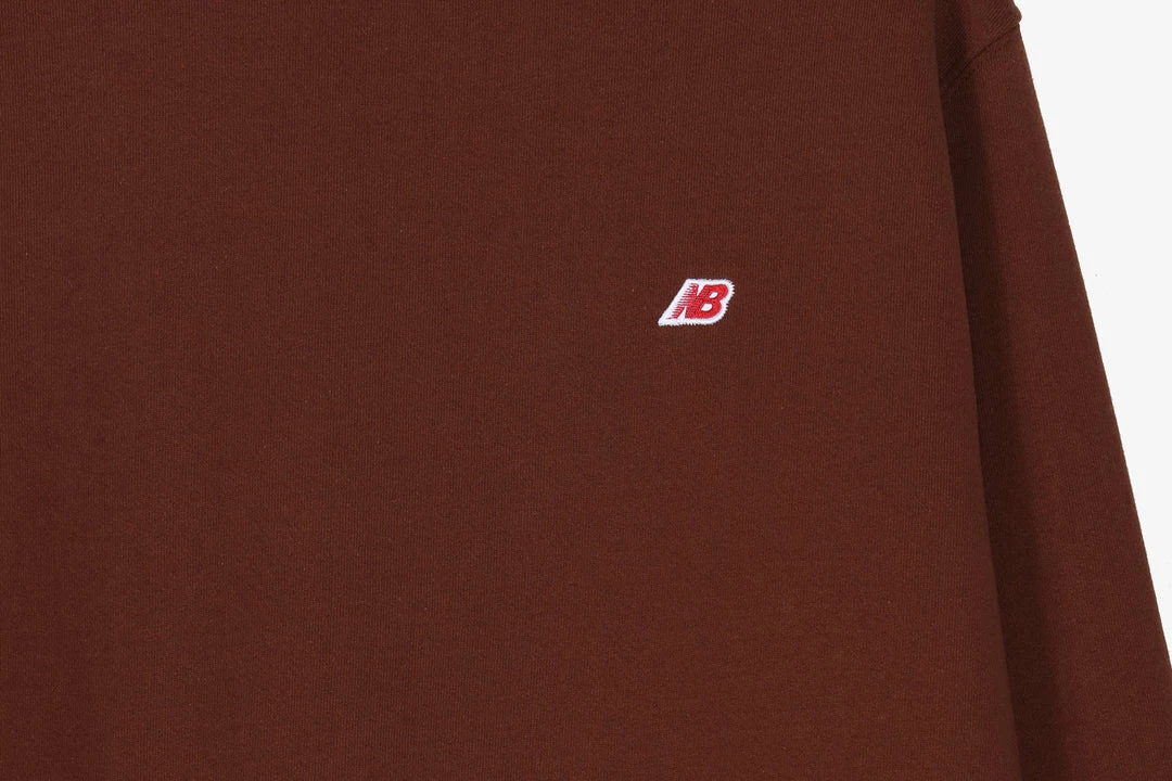 Here we have a uniform staple crewneck constructed from 100% cotton in the USA. A New Balance NB embroidered patch logo appears on the left-hand side of the chest.