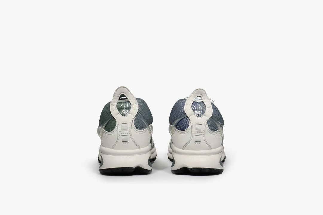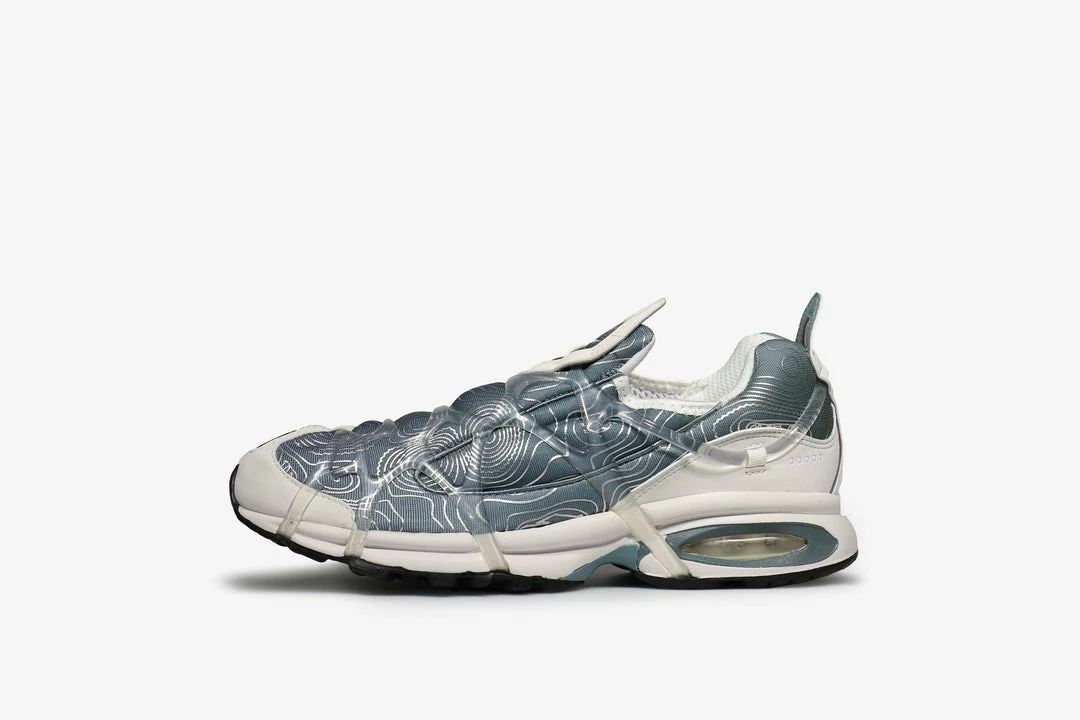 Casual meets technical with the Air Kukini. Inspired by ’90s ski suits, its stretchy blue/green blended neoprene-like fabricΒ features a shiny contoured design that takes this shoe to another dimension. The webbed support system adds a sporty touch, while visible Air cushioning puts the cherry on the bottom for this boundary-pushing paradox.