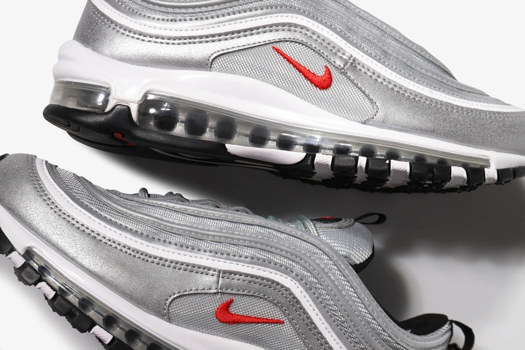 Push your style full speed ahead with the Nike Air Max 97 OG. Its iconic design takes inspiration from water droplets and Japanese bullet trains. A durable, synthetic upper keeps the organic look of the original while mesh underlays help keep it airy. A full-length Nike Air cushioned sole unit lets you ride in first class comfort.