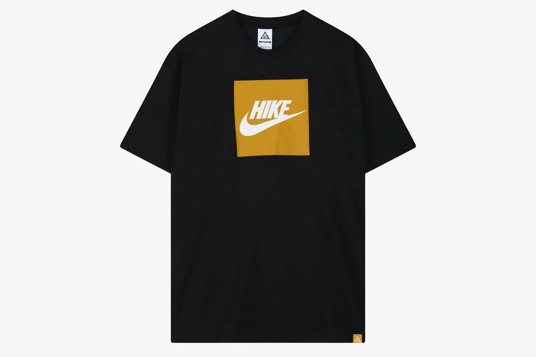 This one’s for the outdoor enthusiast who dreams of mountain trails and forest frolics even when they’re stuck in traffic or behind a desk. This Nike ACG “Hike Box” tee is a heavyweightΒ Poly/Cotton blend short sleeve T-shirt that features the iconic Swoosh box logo screen-printed on the front with the word “Hike” replacing the brand’s name. The soft, blended fabric is made with Nike’s sweat-wicking technology to help you stay dry and comfortable while you roam.Β