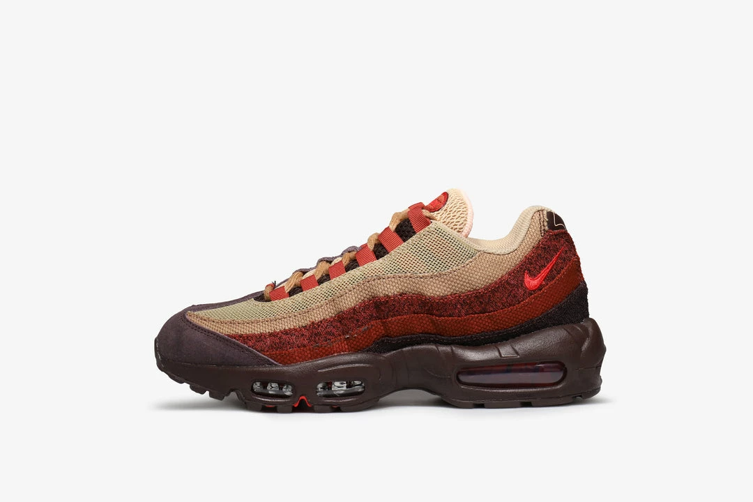 The classic is back. Taking inspiration from the human body and ’90s track aesthetic, the Nike Air Max 95 mixes unbelievable comfort with head-turning design. Wavy side panels add natural flow to any outfit while warm earth tones ground your look in rugged style. Plus, Nike Air in the heel and forefoot delivers comfort with every step.