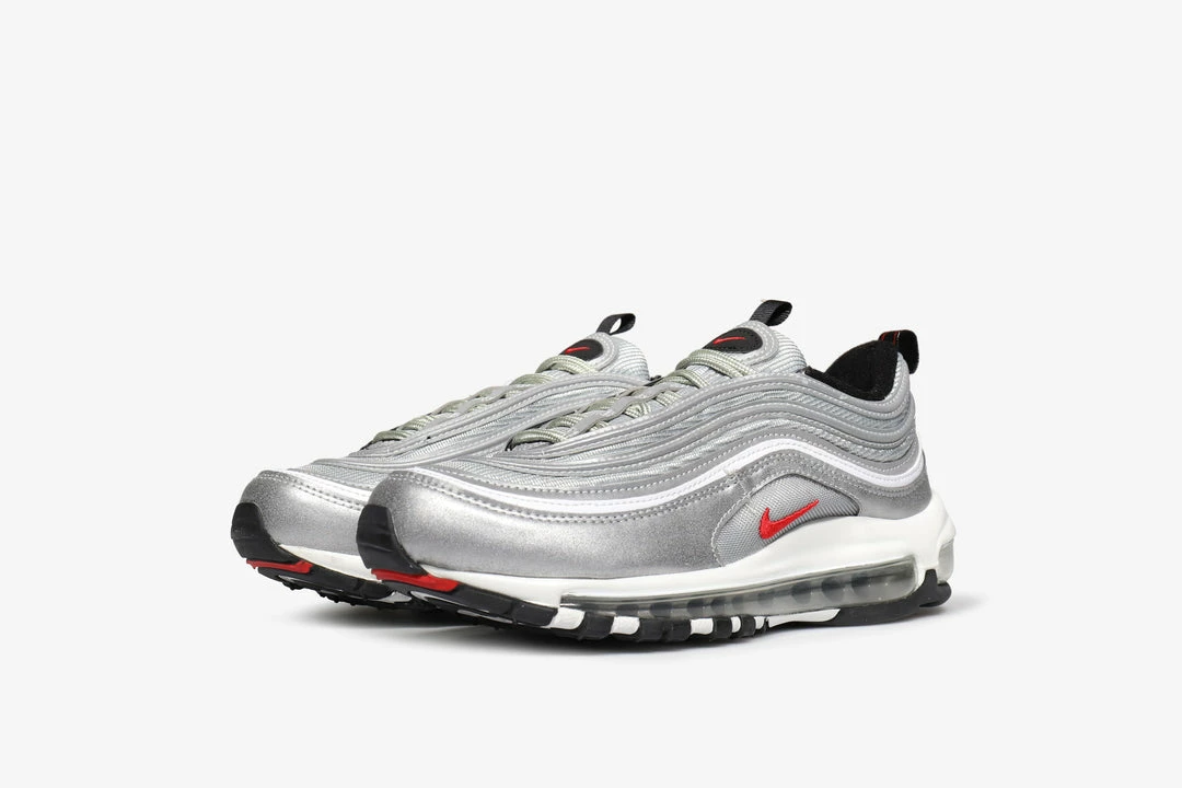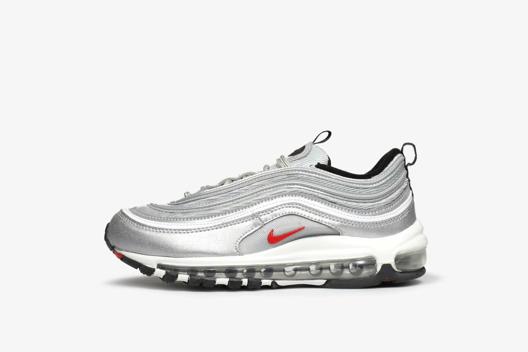 Push your style full speed ahead with the Nike Air Max 97 OG. Its iconic design takes inspiration from water droplets and Japanese bullet trains. A durable, synthetic upper keeps the organic look of the original while mesh underlays help keep it airy. A full-length Nike Air cushioned sole unit lets you ride in first class comfort.