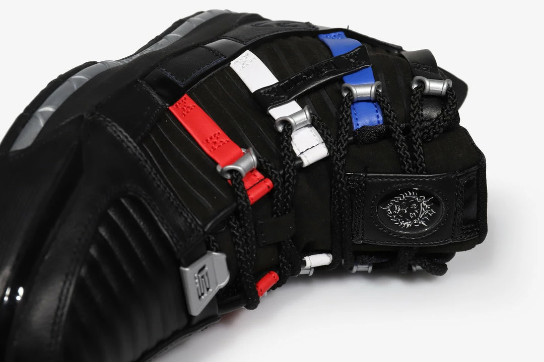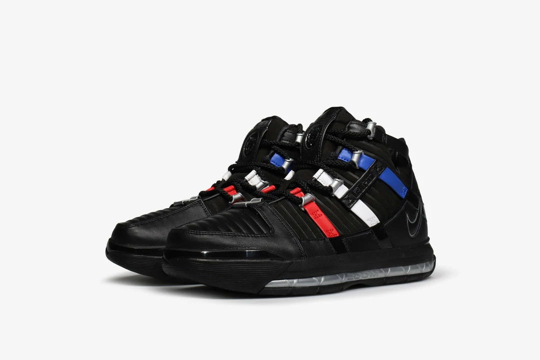 The Lebron III QS “The Shop” comes predominantly in black with classic red, white and blue accents to celebrate those trusted barbershops that keep you looking fresh. Metallic details, nodding to the tools of the trade, polish your outfit. Embroidered details can be found throughout like the “330” at the toe representing Lebron’s hometown area code and “BBZ” – the first initials of Lebron’s children. Finishing it off, Zoom Air cushioning delivers more comfort than a hot towel service.