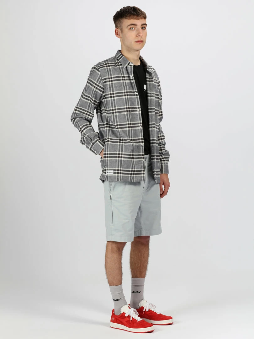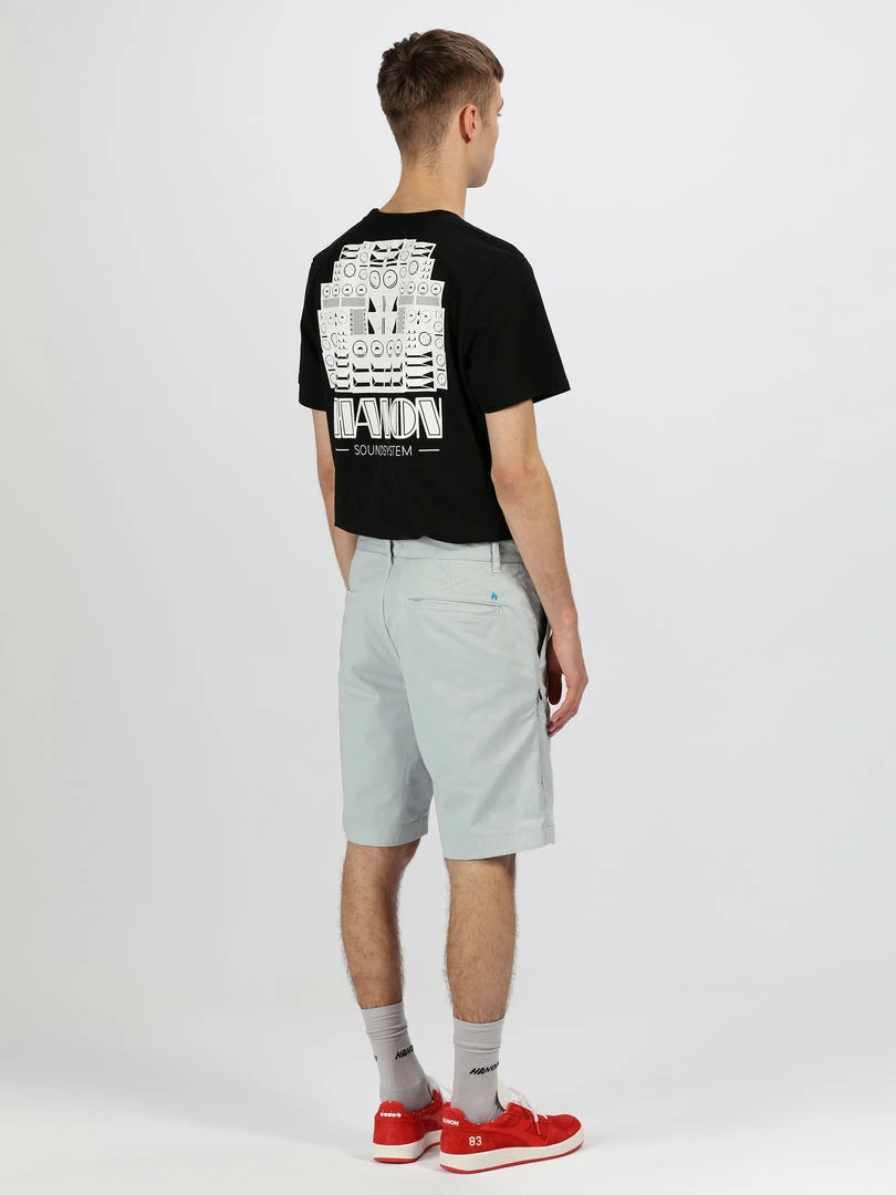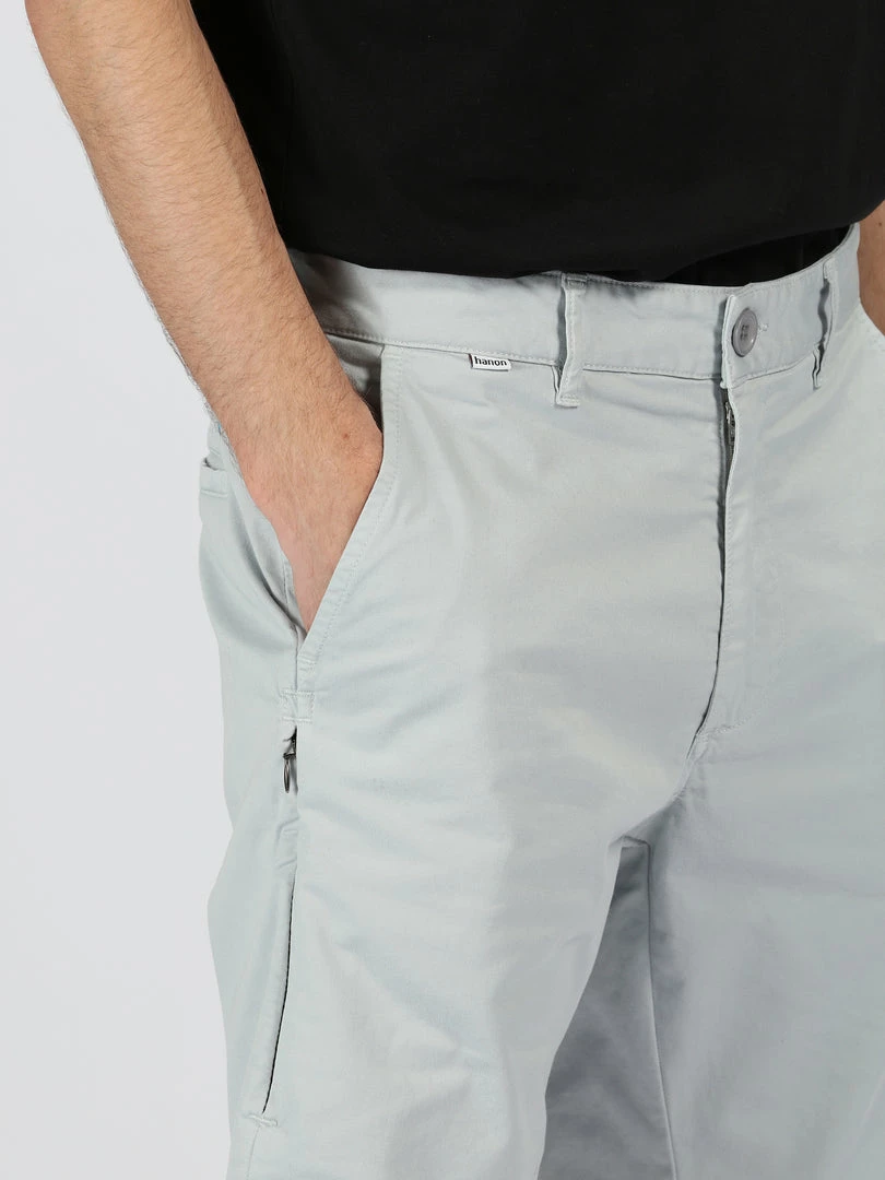 The HANON Cyrus Short inΒ Pearl Blue is crafted in Portugal using 240gr garment dyed cotton twill and features double side entry pockets, woven flag label, single welt rear pockets, flame embroidery, YKK zip fly, and a concealed zip side pocket.