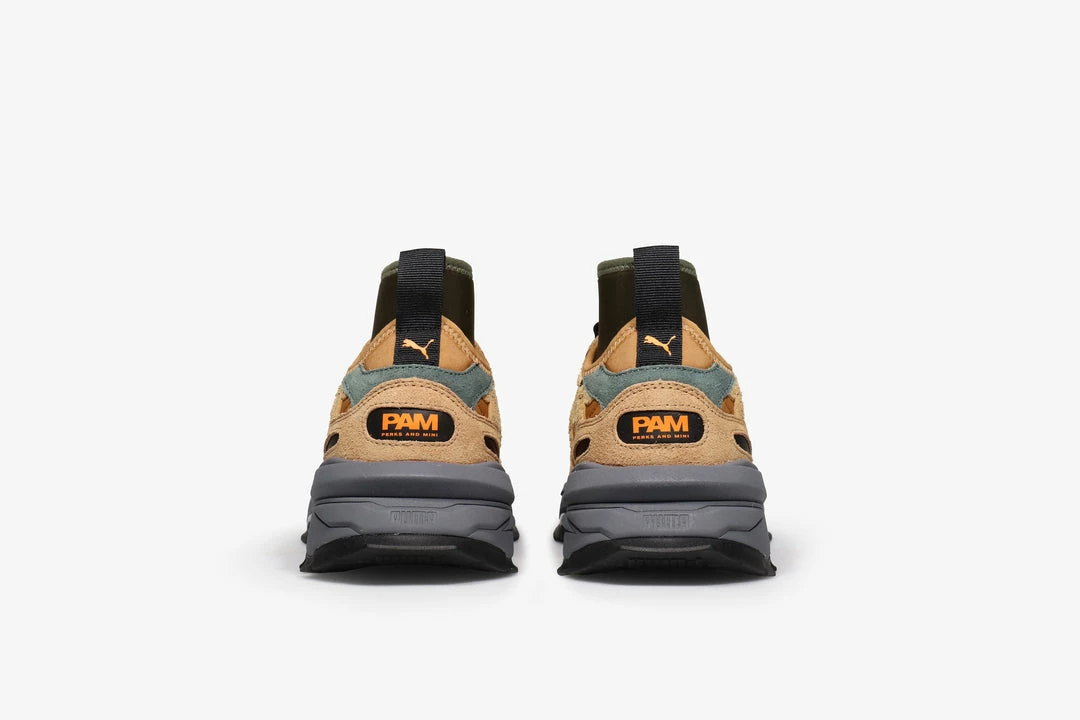P.A.M. are back with another collab this time with the big cat Puma.Β Established in Melbourne in 2000, Perks and Mini (also known as PAM) creates cutting-edge streetwear pieces that fuse art, fashion, and graphic design. The first-ever Puma x PAM collaboration features colourful, outdoor-inspired silhouettes ready for endless exploration. TheseΒ bootsΒ areΒ function focussedΒ but boast PAM’s fun loving approach to art and design with the durable upper featuring suede overlays of their signature floral branding. The stretchy fabric at the ankle paired with the quicklace system provide total coverage and custom fit. Collaboration branding can be found printed at the heel and down the tongue tape.Β