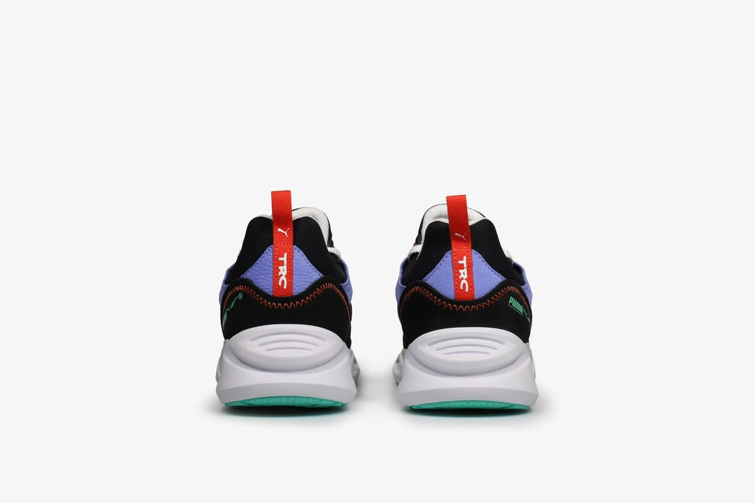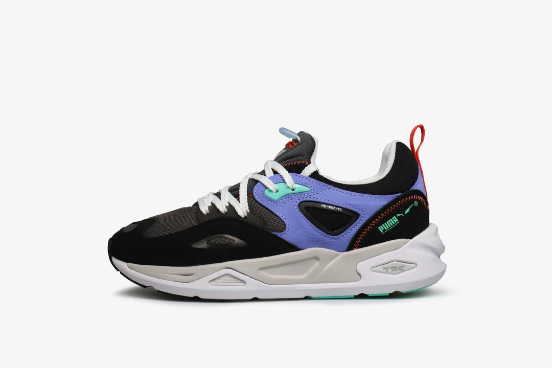 First appearing in the 90’s, the Puma Blaze model’s design is centred around three core elements: cushioning, flexibility and stability β represented by the iconic triangle logo. Three decades later, the TRC Blaze returns continuing it’s legacy. This time, an athletic mesh upper collides with suede overlays, Lycra features and TPU elements to form a chunky, cutting-edge silhouette.