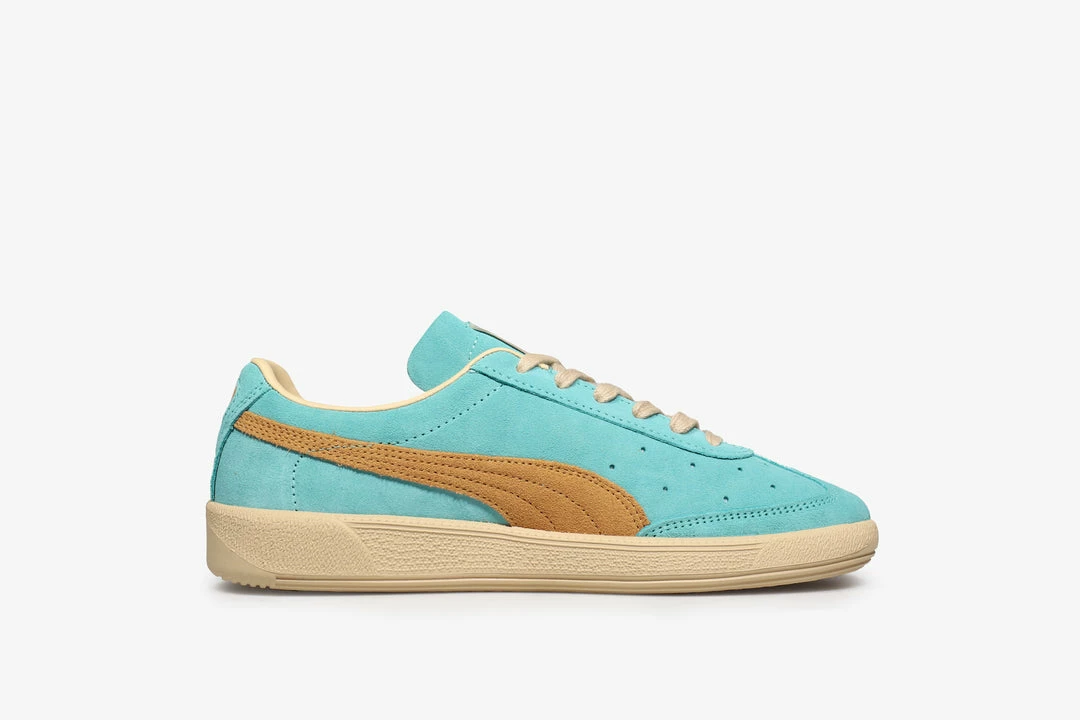 First released in 1978, the signature shoe of handball legend Vlado Stenzel, nicknamed “The Magician” returns. This latest iterationΒ draws inspiration from European currencies of the past with this pair based on the French Franc – France’s legal tender before the Euro. The Vlado Stenzel signature shoe is the definition ofΒ a classicΒ featuringΒ the iconic T-toe overlay, perforations on the toe and the distinctive Vlado Stenzel signature in gold foil on the lateral side of the shoe. Textured suede makes up the formstrip of the shoe, giving some contrast and a classic look.Β