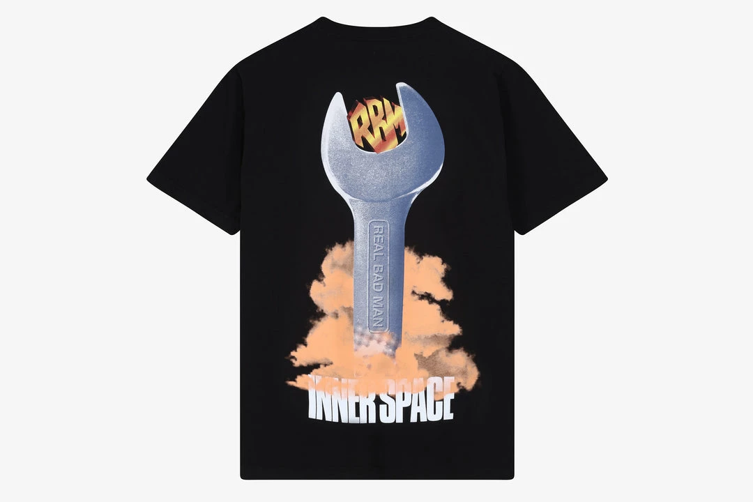 Established streetwear brand from Los Angeles Real Bad Manย return to HANON this autumn/winter season.ย Real Bad Man areย known for their unique and vibrant graphics,ย humorous designs and links with underground subcultures. Real Bad Man is not a brand to be overlooked this season. Theย All Gates Open tee is crafted from 100% cotton and features RBM branding screen-printed on the front as well as a large spanner graphic at the back.ย