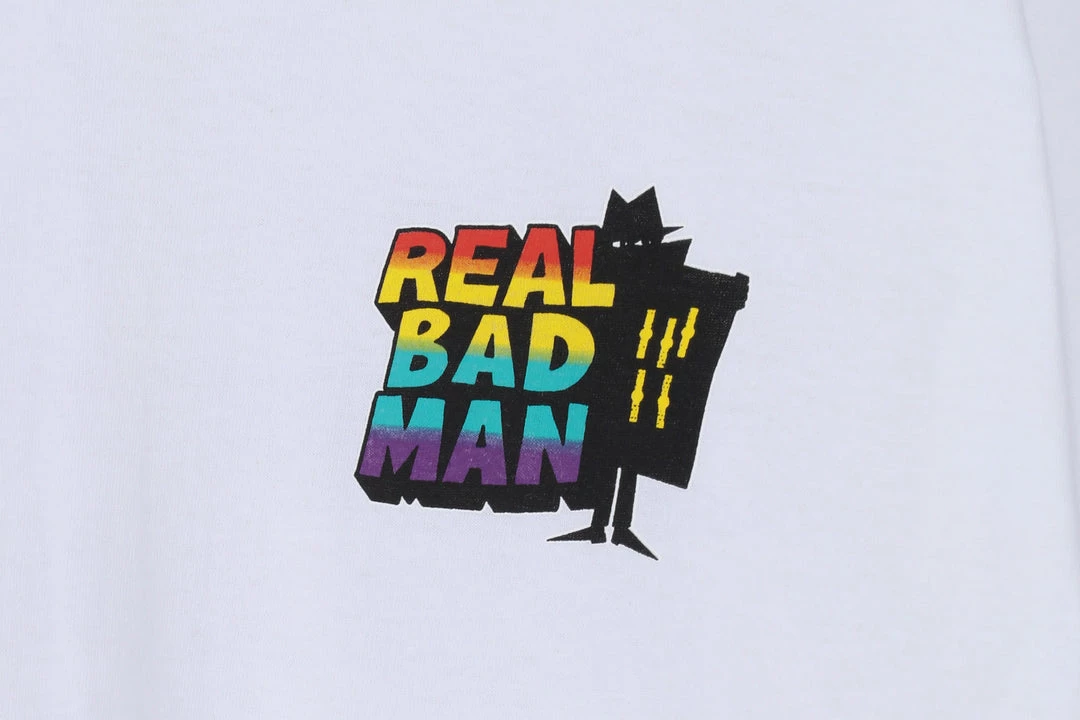 For the third delivery of Spring/Summer ’22Β from graphicly giftedΒ Real Bad Man comes a fresh selection of vibrant stand out pieces of apparel and accessories. Premium construction meetsΒ colourful & detailed artwork to create a powerful outcome that can’t be missed.Β The Crimewave tee is a 100% cotton short sleeve tee featuring RBM branding screen-printed at the chest as well as a typographic design printed across the back.Β