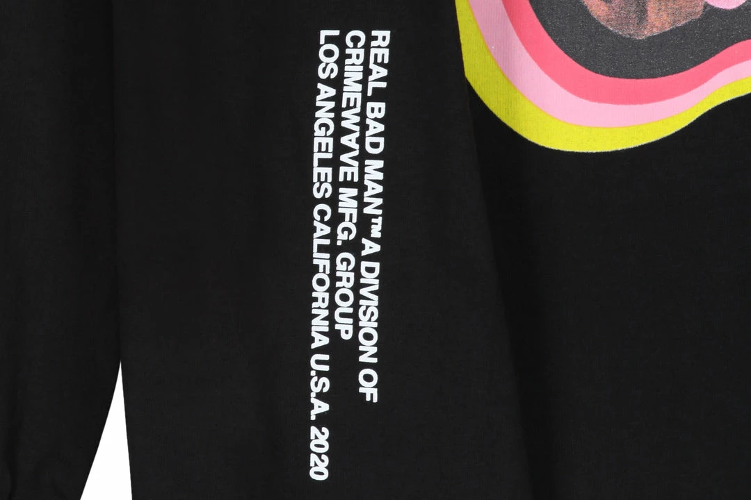 The Real Bad Man Driver LS Tee from Season 5 is a made in USA long sleeve 100% cotton t-shirt with a left chest print and large back print which depicts RBM driving a pretty insane looking car.