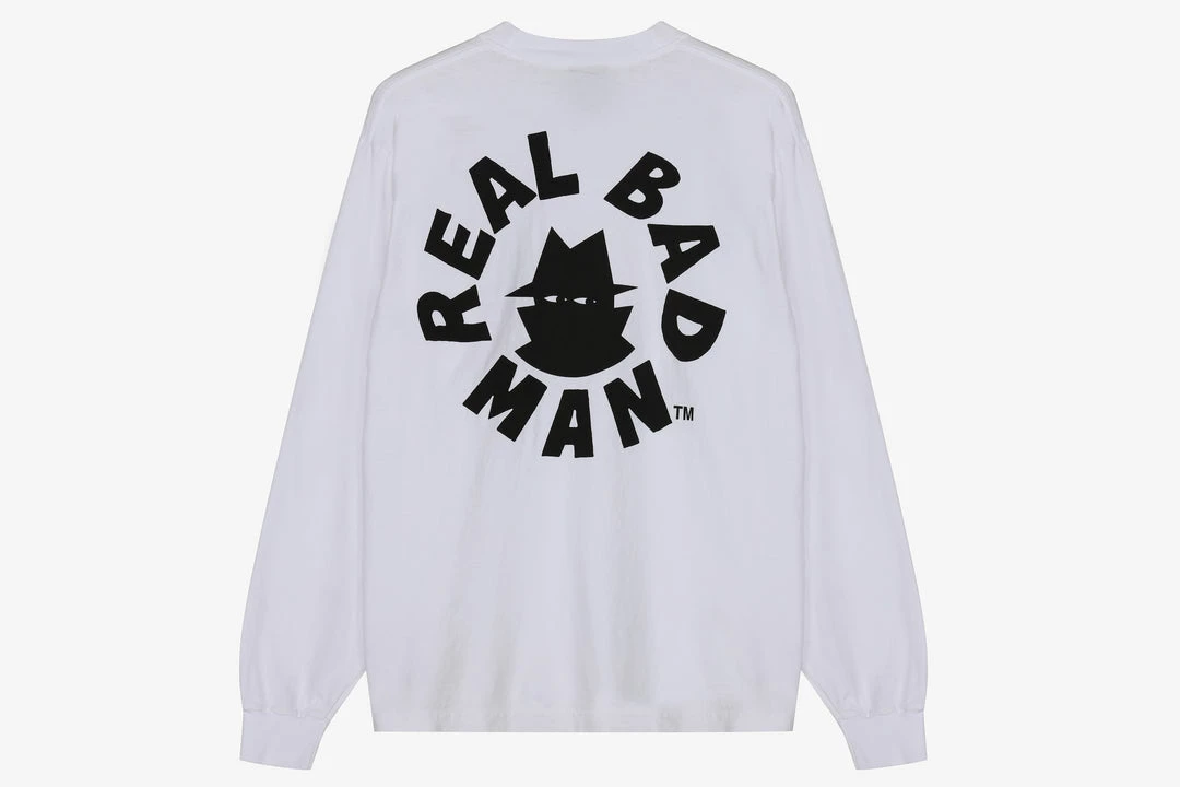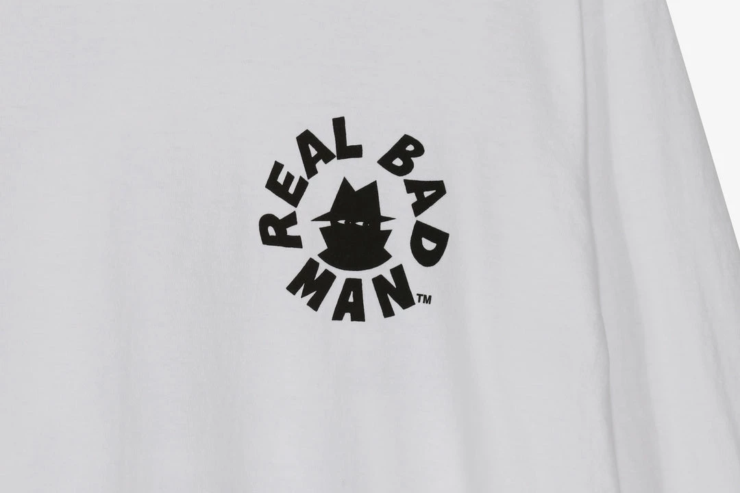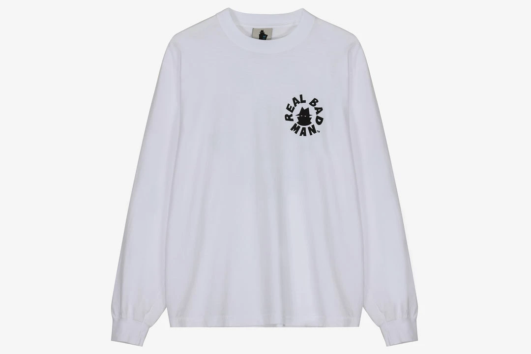 The latest drop from Adam Weissman’s Real Bad Man is packed full of niche references to music, film, Sci-Fi and pop culture that have been curated during Weissman’s time in Los Angeles. All the graphics are delivered in the technicolour style that the brand is best known for, full of colour and personality. Less is never more at the Real Bad Man headquarters. Minimal by RBM’s standards, the circle logo is found on the chest and the back in a black print, sitting against the white of the cotton tee. Cuffed sleeves keep the fit of the long sleeve tee secured.