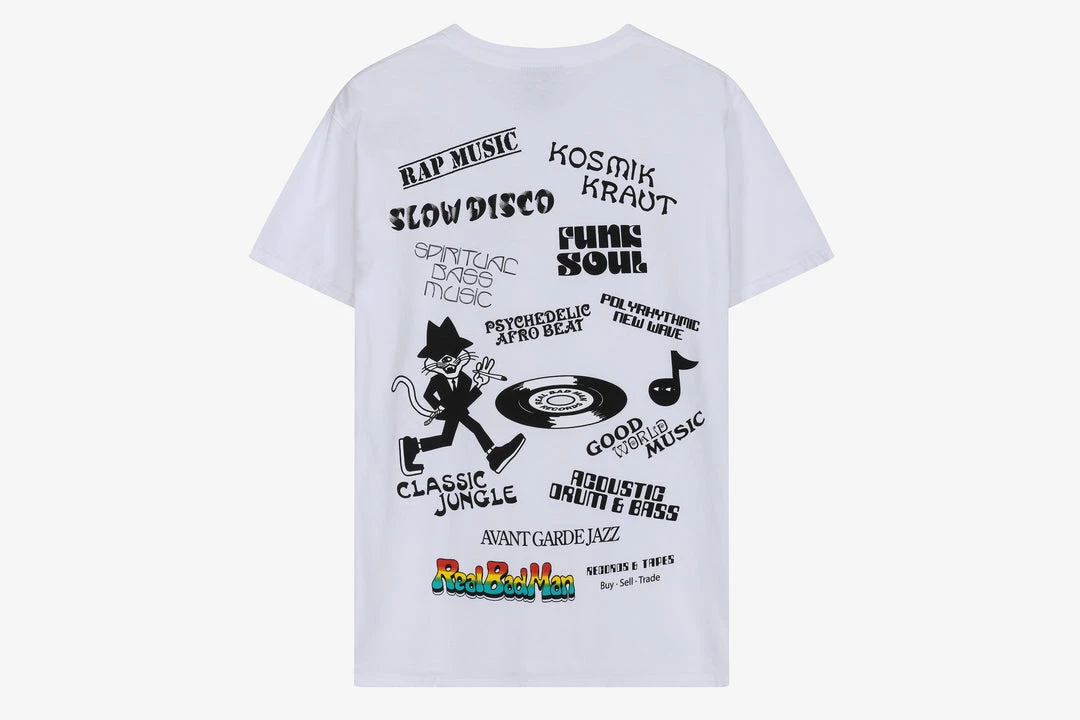 Returning to Hanon for Spring/Summer ’22 Real Bad Man deliver another graphic galore collection that doesn’t disappoint. Premium construction meets vibrant & detailed artwork to create a powerful outcome that can’t be missed. The Records And Tapes SS tee is a 100% cotton short sleeve T-shirt featuring screen printed RBM branding on the chest with a music inspired graphic printed across the entire back. Finished with a woven neck seam label.