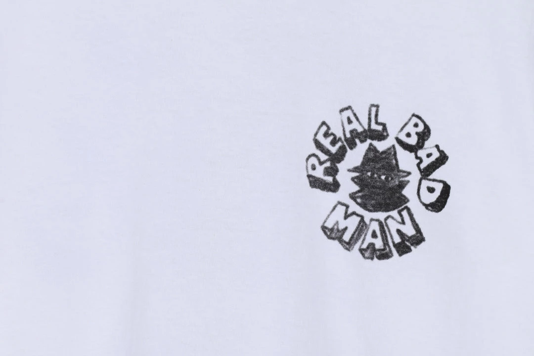 For the second delivery of Spring/Summer ’22Β from graphicly giftedΒ Real Bad Man comes a fresh selection of vibrant stand out pieces of apparel and accessories. Premium construction meetsΒ colourful & detailed artwork to create a powerful outcome that can’t be missed. TheΒ Sketchy RBM TeeΒ is a 100% cotton short sleeve T-shirt featuring RBM branding in a marker pen art style screen-printed at the chest. The graphic is printed larger on the back.Β Finished with a woven neck seam label.Β