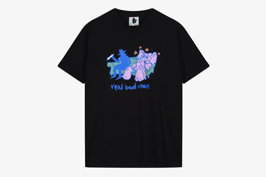 Established streetwear brand from Los Angeles Real Bad Man return to HANON this autumn/winter season. Real Bad Man are known for their unique and vibrant graphics, humorous designs and links with underground subcultures. Real Bad Man is not a brand to be overlooked this season. The Zonked Friends tee is crafted from 100% cotton and features artwork screen-printed on the front that depicts THE Real Bad Man character smoking a very large cigarette with an elephant on the sofa.