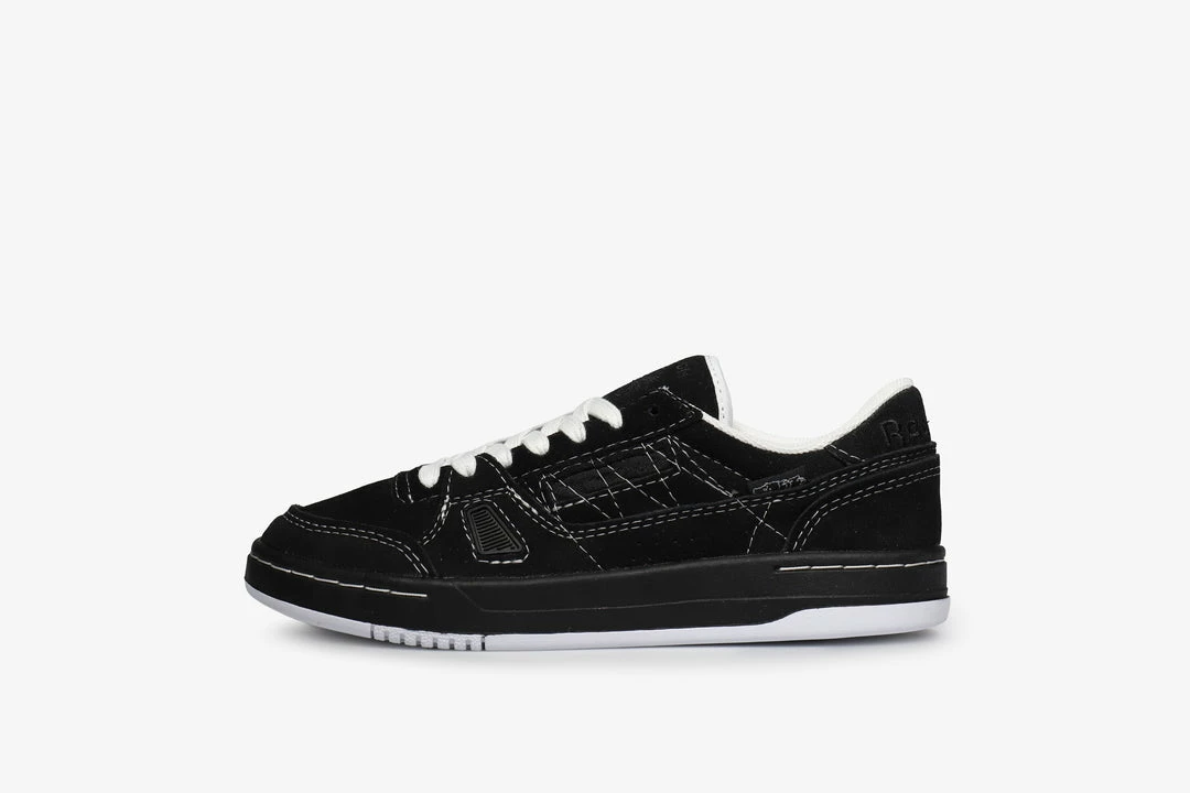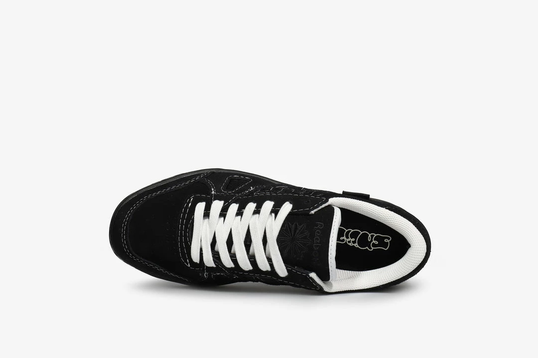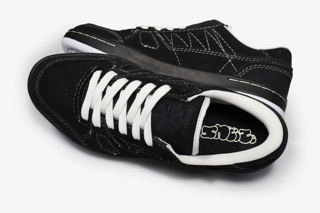 Sneeze magazine teams up with Reebok on this blacked out LT Court. Established in 2008, Sneeze magazine’s keen focus on streetwear culture as well as it’s skateboarding influences shines through on this latest collaboration. The all black suede upper features white stitching details that break up the form and provide a subtle contrast. Branding arrives at the tongue and heel as well as a woven tab label with Sneeze branding at the side wall. The insole also features the magazine’s graffitiΒ style logo printed in white.Β