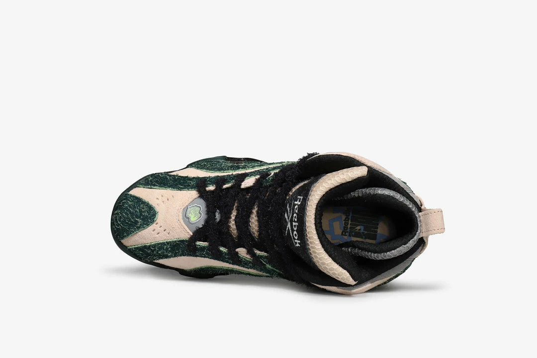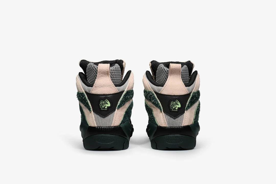 Braindead & Reebok are back with another collaboration. This time cult LA brand Brain Dead rework a classic from the Reebok basketball archive the Shaqnosis. Fall into the hypnotic trance of these Shaqnosis shoes inspired by rad ’90s B-ball style and hardwood legend Shaquille O’Neal but make it Brain Dead. High-contrast colour and some seriously lux long ‘hairy suede’ contrasts nicely against the pale blush underlays to create a compelling point of difference.