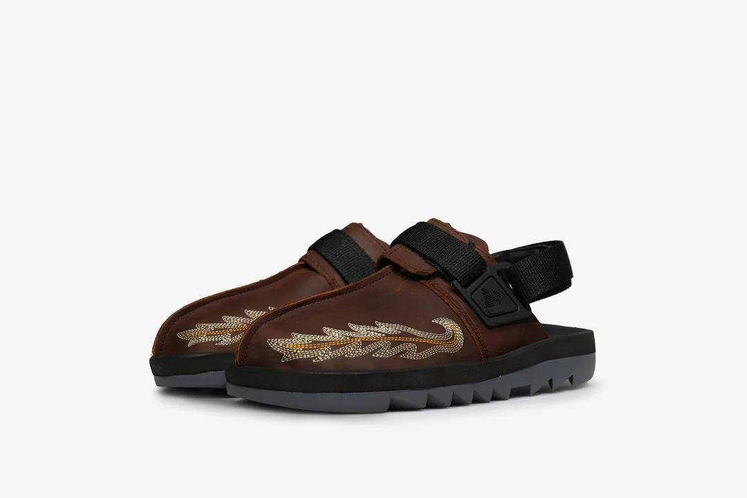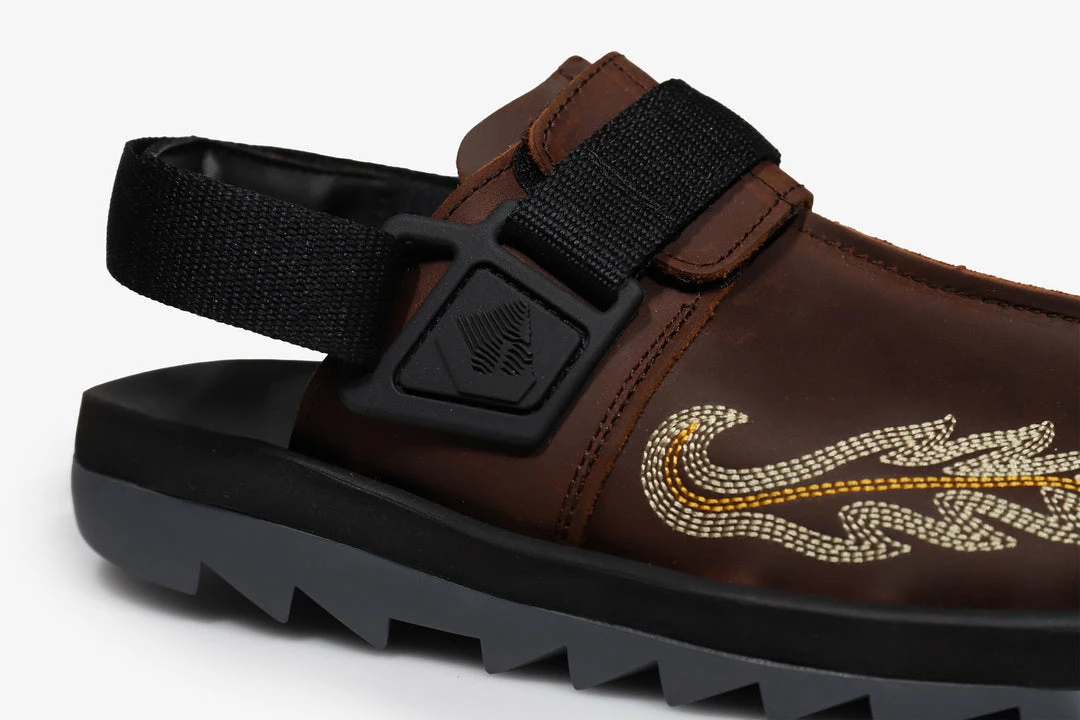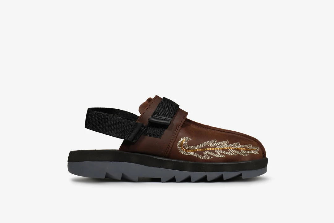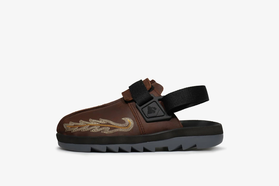Known for their subtle executions as well as remixing and refining Reebok’s classic designs, Mountain Research’s latest effort falls under the latter. Working on the Beatnik slide a niche shoe turned breakaway star over the past few seasons. We see a Beatnik unlike anything that’s come before it. Japanese designer Kobayashi Setsumasa takes elements from 00’s hiking boots and design references from Mountain Research’s shared knowledge of footwear stylings and combines it with a dose of Americana as we’re treated to some stitching details that echo those of the iconic western ‘Cowboy Boot’. An all leather upper features in a nod to both rugged styles of footwear complete with the aforementioned stich detail. A signature ripple sole unit with it’s cut ridges offers comfort and grip for this lounge ready style.