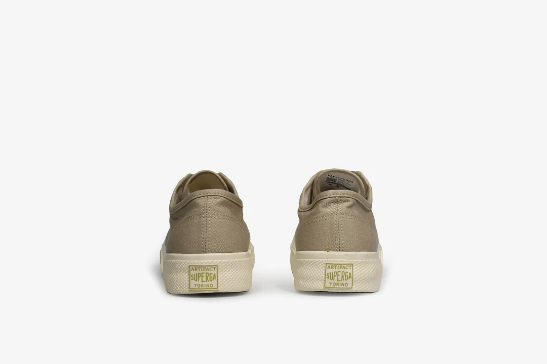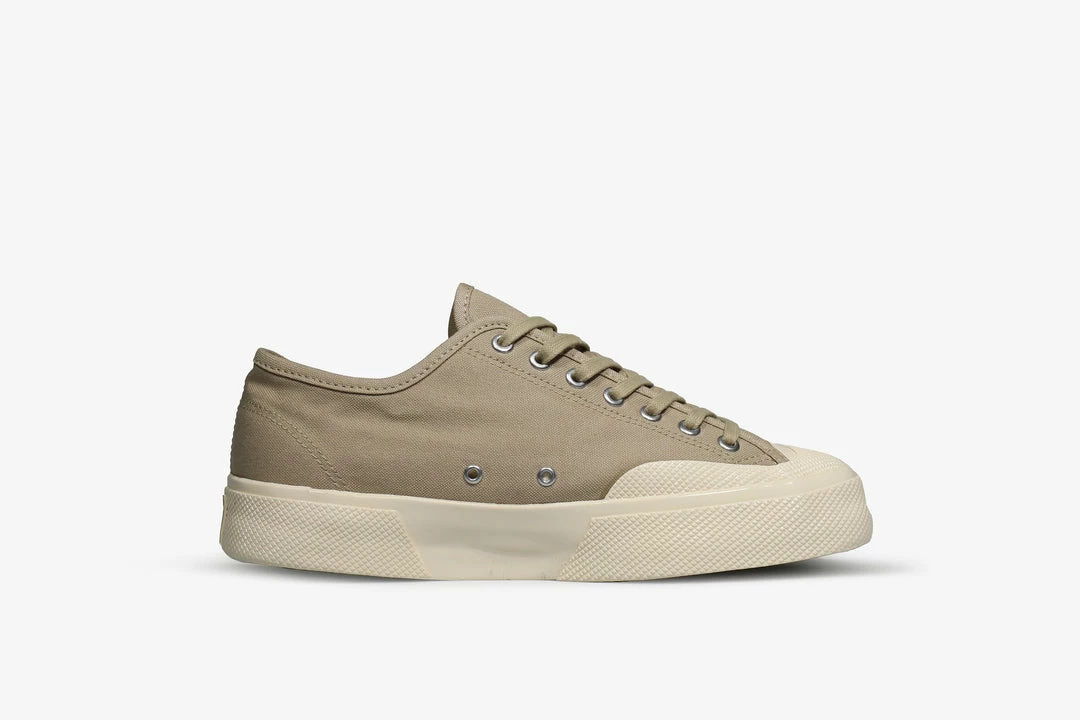 Over a century old, Superga continue to produce high quality footwear that is as versatile as it is stylish. Vulcanised sole units & premium upper materials are just some of the ingredients to their successful design formula. This Superga Artifact 2432-W C1150 uses a Japanese Selvedge Duck canvas for it’s upper which is renowned for it’s durability. This pair’s sandy upper sits on top of a glossy off-white vulcanised sole unit with a rubber toe cap for complete protection.