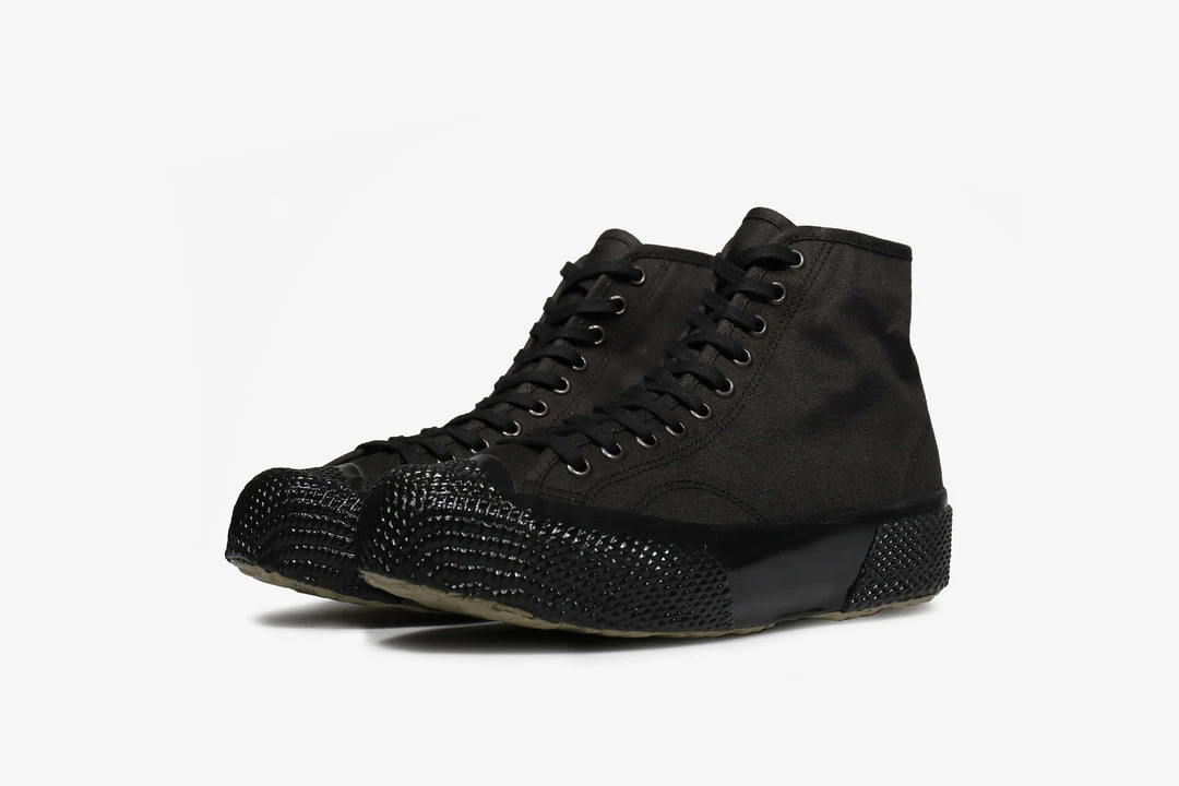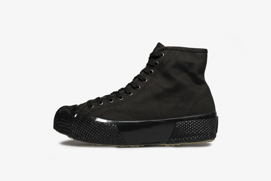 Over a century old, Superga continue to produce high quality footwear that is as versatile as it is stylish. Vulcanised sole units & premium upper materials are just some of the ingredients to their successful design formula. This pair of blacked out high-tops come in a reinforced cord cotton weave upper that is made to stand the test of time, paired with a blacked out vulcanised sole unit that reinforces the ruggedness of the shoe. Tonal metal eyelets add an extra hardwearingย elementย to the shoe, makingย themย equippedย for heavy use.