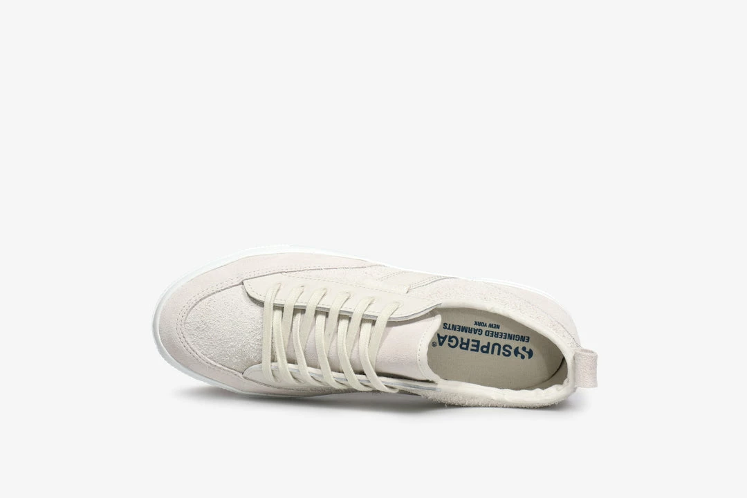 The concept for this shoe combines the elegance of Superga’s tennis shoes with the raw, utilitarian feel of their military goods. Fusing these two attitudes, Daiki has created a rugged shoe that never goes out of style. Engineered Garments x Superga 3420 Mil Low is a military-style silhouette, cut as a low top style like the original army shoe. In signature EG fashion, the canvas material is switched out for a combination of luxurious long and short hair suede and smooth leather, applied asymmetrically – only recognizable up close. The eyelets are installed in the same colour as the shoe for a sleek, low-profile look, and the sole is designed in a vulcanized style of overlapping rubber layers. A final touch comes with the subtle Engineered Garments branding on the side panel. Nearly imperceptible, this embossed logo gives the pair a polished appearance without standing out.
