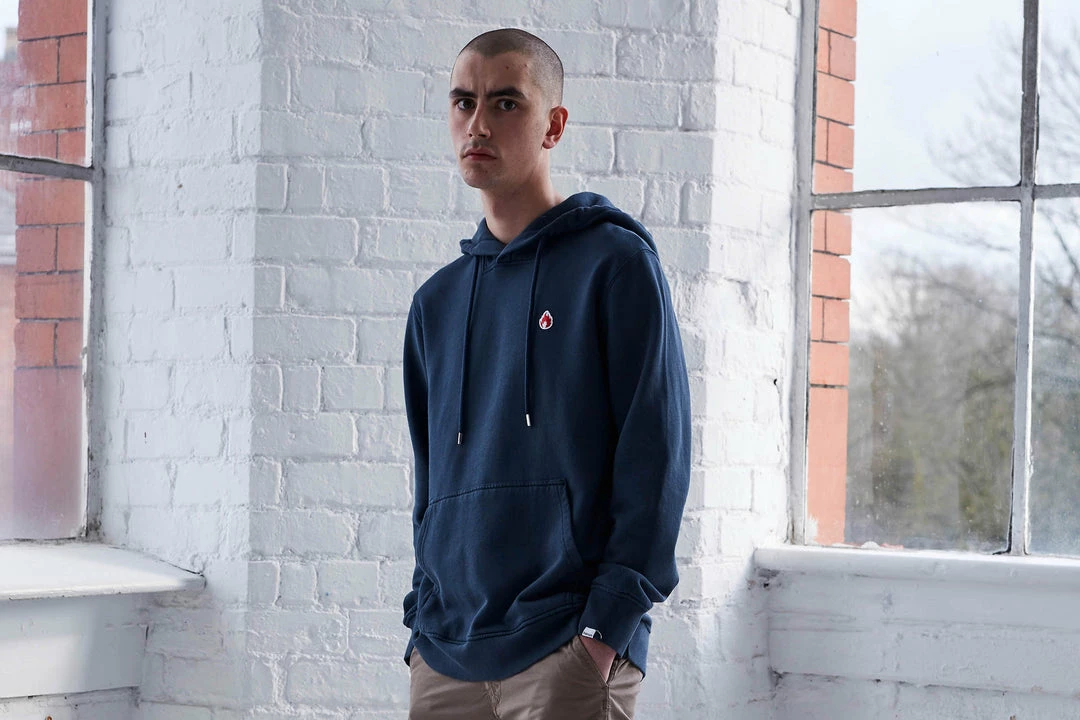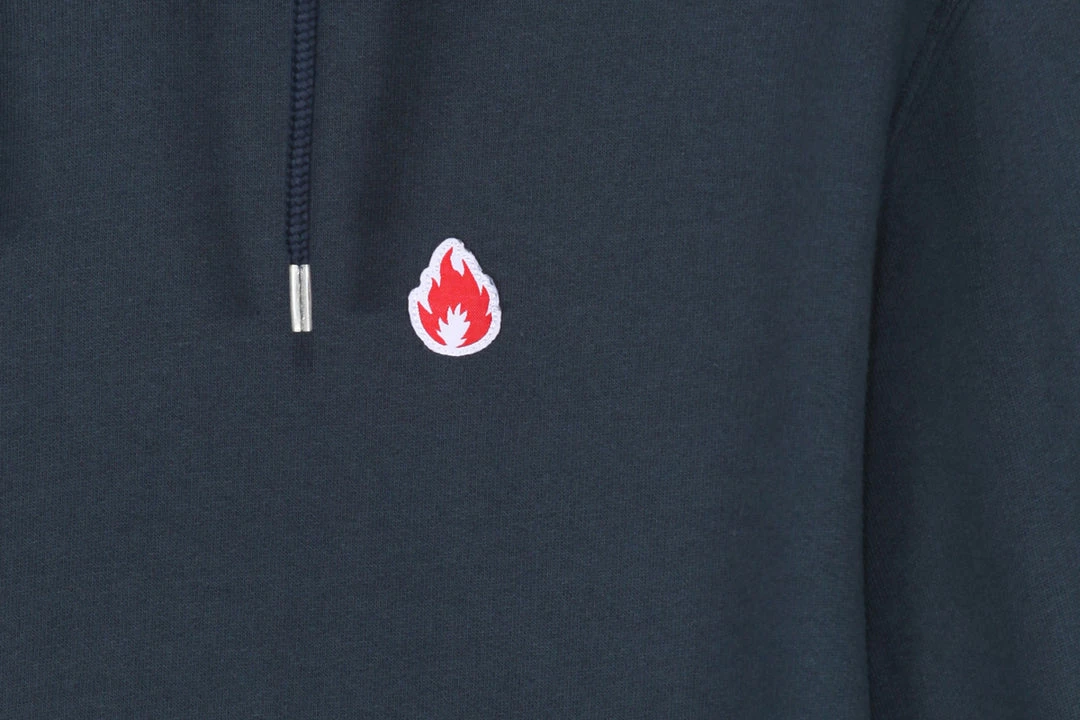 Crafted in Portugal from premium 100% brushed cotton, this Hooded Sweat features Hanon Woven ‘Flame’ chest patch. Concealed phone pocket in kangaroo pouch.