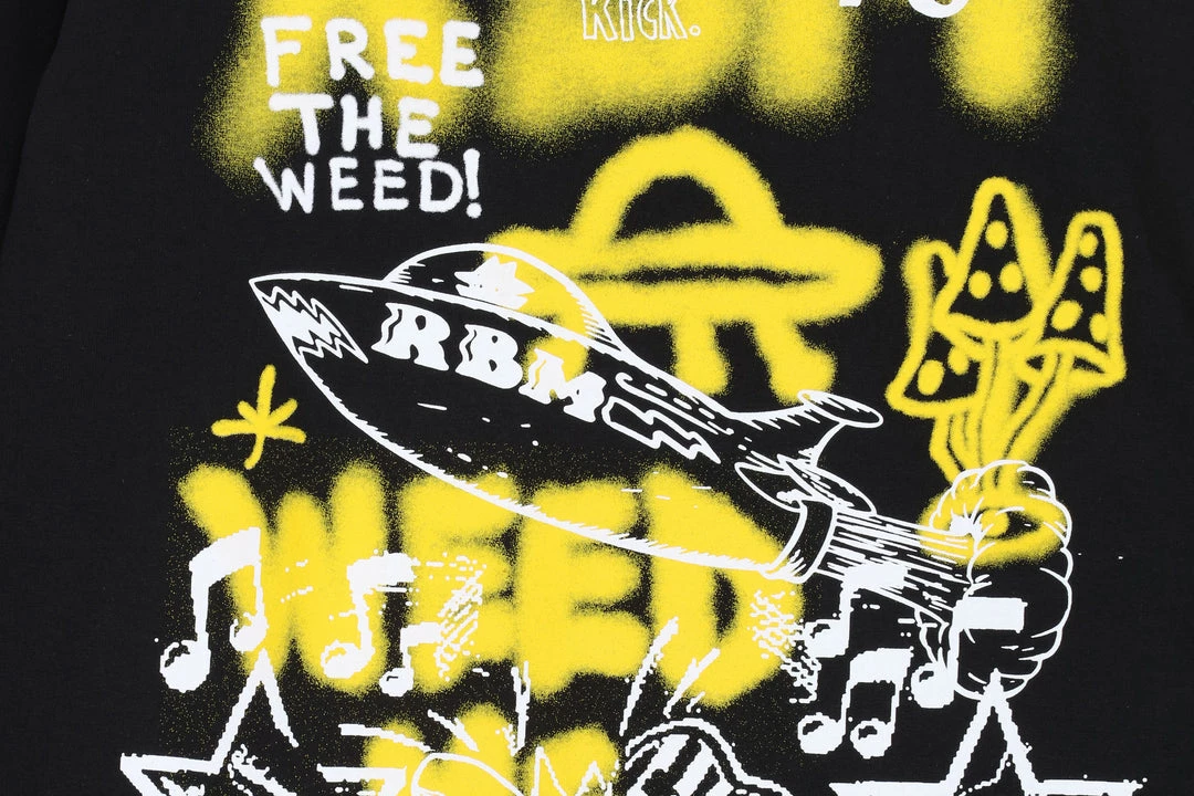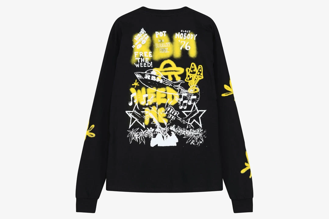 Returning to Hanon for Spring/Summer ’22 Real Bad Man deliver another graphic galore collection that doesn’t disappoint. Premium construction meets vibrant & detailed artwork to create a powerful outcome that can’t be missed. TheΒ Free The Weed LSΒ tee is a 100% cotton long sleeve T-shirt featuring layers of graphics printed on the back and a RBM logo on the front.Β Finished with a woven neck seam label.Β