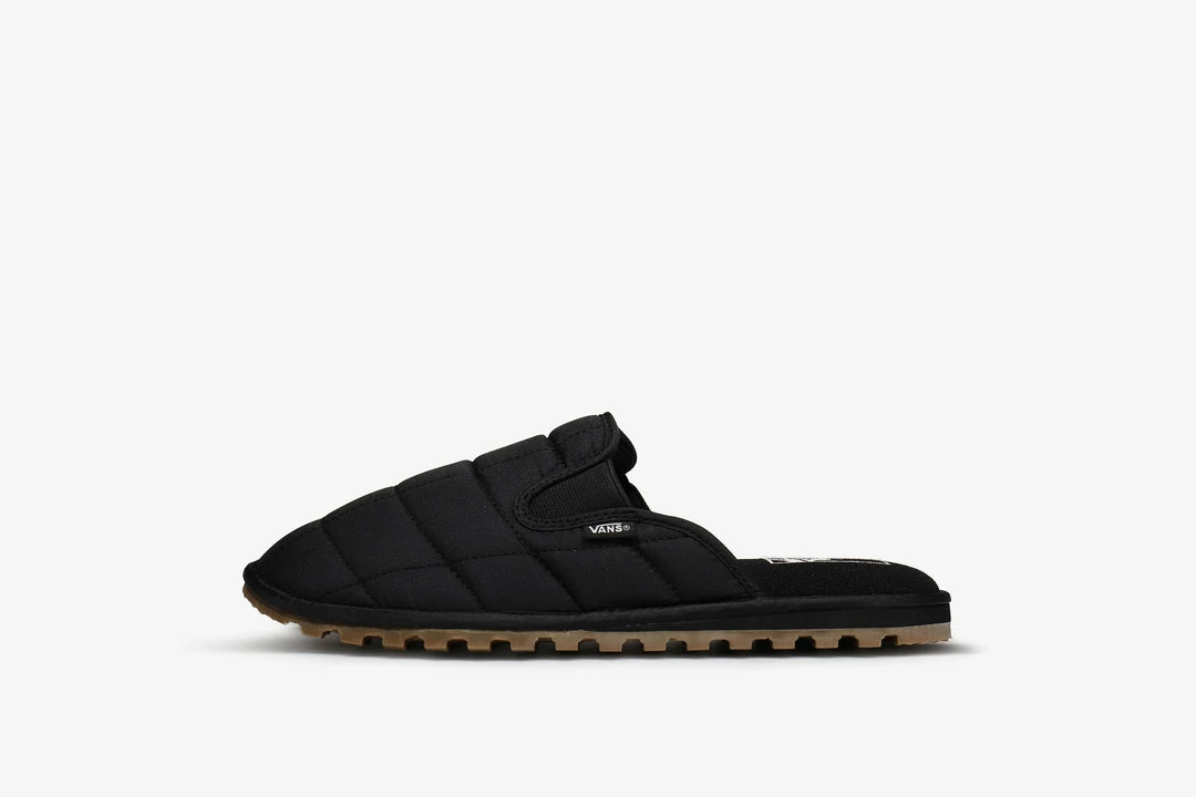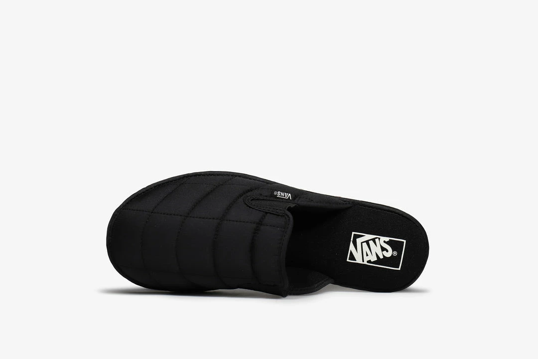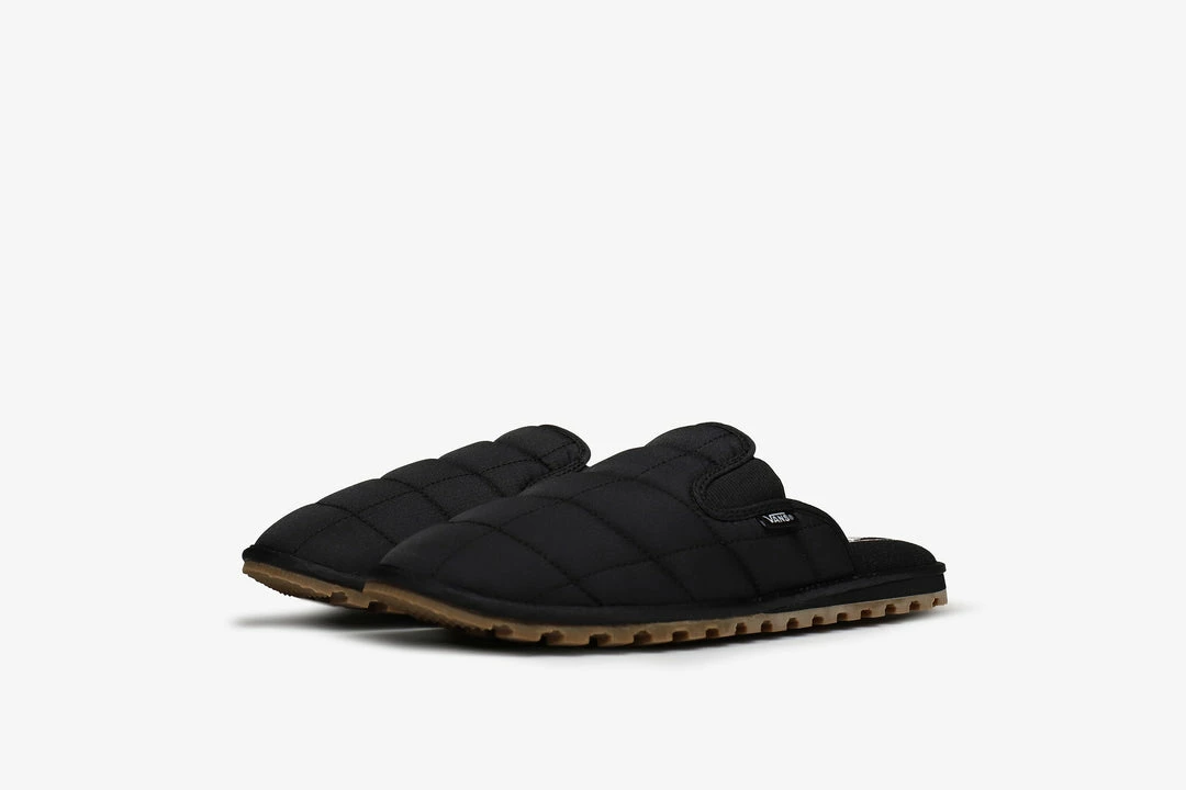 A dependable comfortable wear for your downtime. Vans drop this timely mule style just as the temperatures begin to slide and you need something ‘cosy’ for lounging in.Β Featuring an all-black quilted upper with a grippy gum rubber outsole.Β