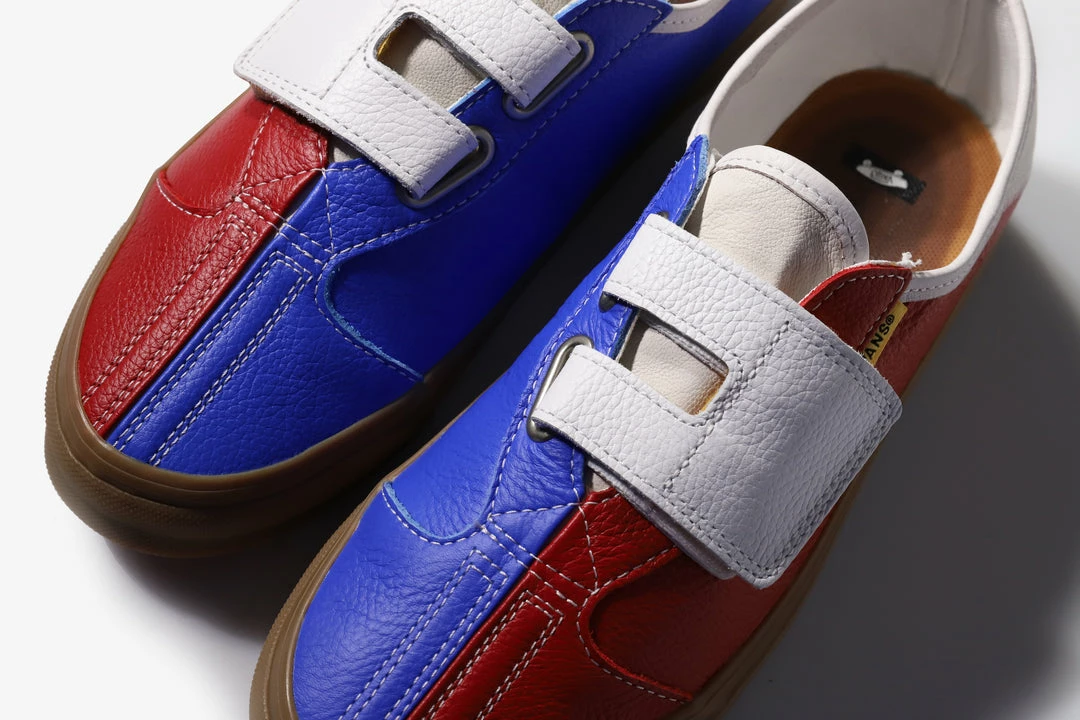 Vault by Vans welcomes Deaton Chris Anthony (DCA) back to the helm, this time to launch a collection of footwear and apparel. The Los Angeles-based artist, musician and designer pays homage to his home state of Kansas and explores his quest to bowl the perfect 300. The OG SCS LX is a tri-tone low-top that resembles the look of a bowling shoe but remixed and remastered the DCA way featuring pebbled leather red, white and blue uppers, and Velcro closure. The heel counter has been updated to have a kick-back, collapsible heel counter and printed size labels. The OG SCS LX is finished with a siped gum sole that has directions to place your own bowling pads for bowling functionality.ย