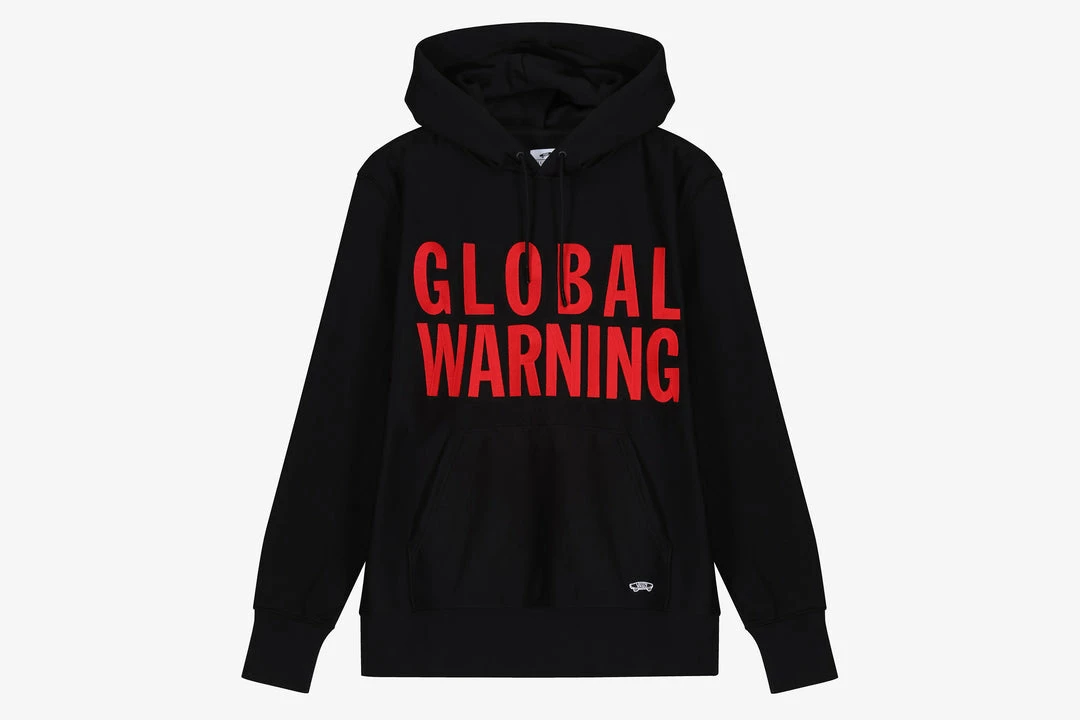 The collection is complemented with a three-piece apparel assortment including Vault by Vans pullover, short sleeve, and sweatpants that feature βGLOBAL WARNINGβ printed/embroidered along with the earth and coffin graphics.Β