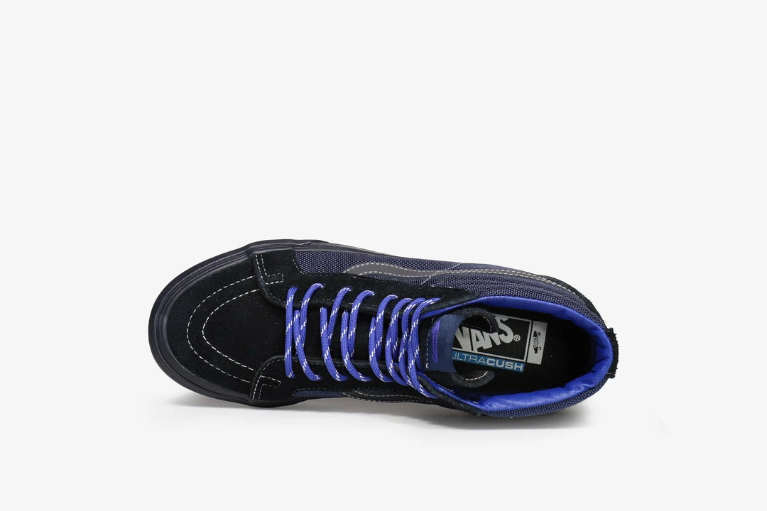 For AW22 Vans Vault get ready for the colder months by dropping a collection of outdoor inspired reworks of their classic silhouettes. ThisΒ Sk8-Hi features a durable nylon upper with hairy suede overlays for a premium look and feel. Vans’ UltraCushβ’ foam midsole provides lightweight cushioning that is perfect for daily wear. Finished with the iconic Vans red rubber heel scab.Β