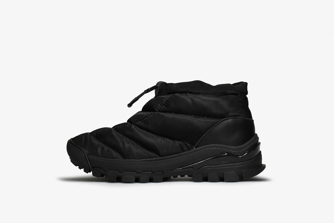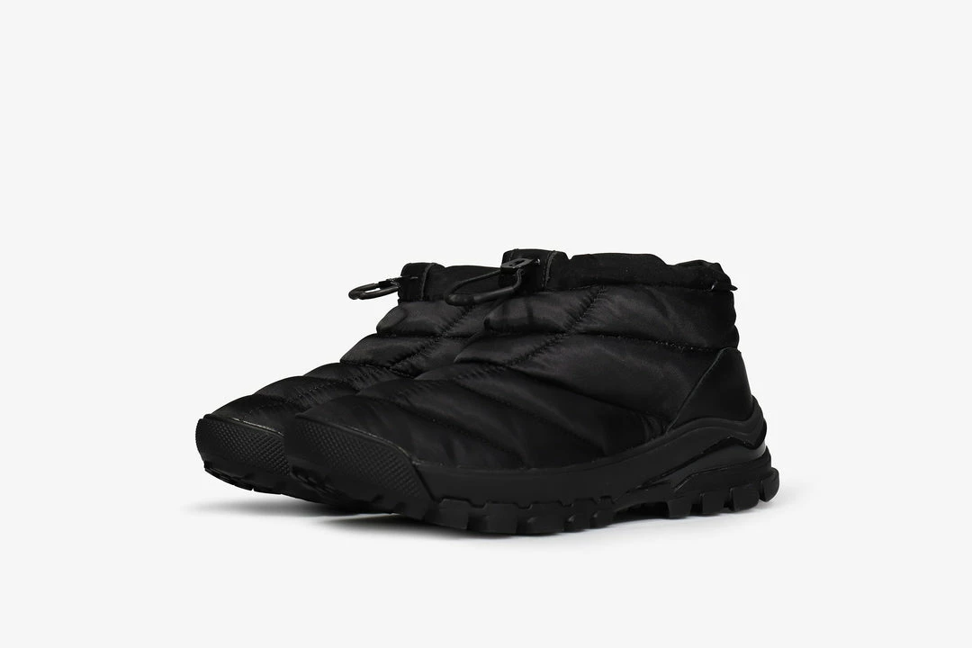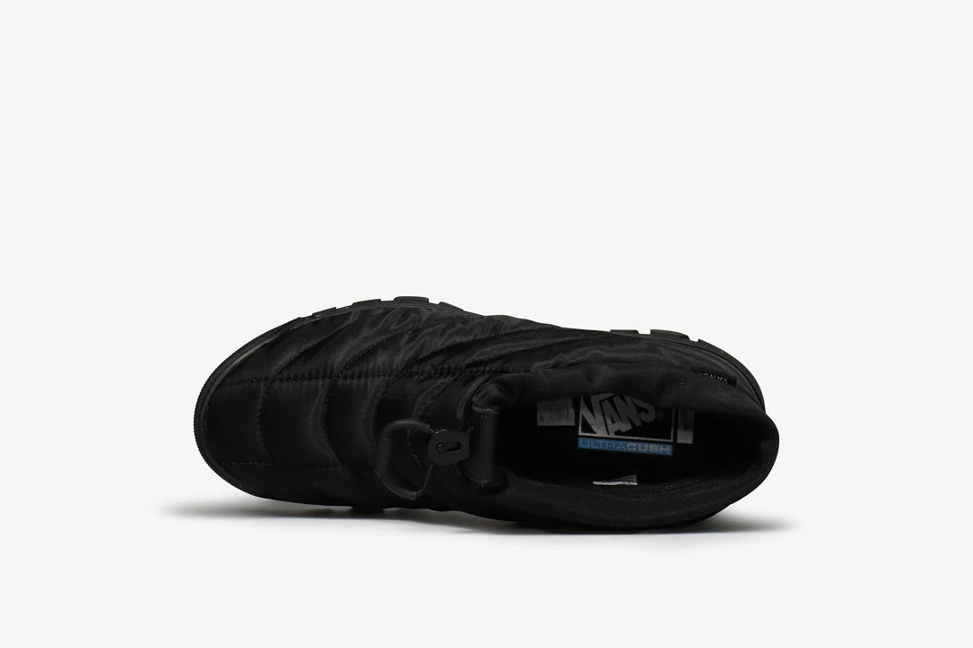 The Vans Vault Slip HikerΒ takes a step away from Vans skateboarding roots and puts it’s focus on function and the outdoors. Ultimate warmth for your feet, a quilted nylonΒ upper with a toggle fastening system keeps you protected from the elements. A tough rubber midsole provides stability for traversing tough terrain while an Ultracush insole gives that extra bit of cushioning. A fully monochrome outfit gives it an incognito look that is both humble and sleek.