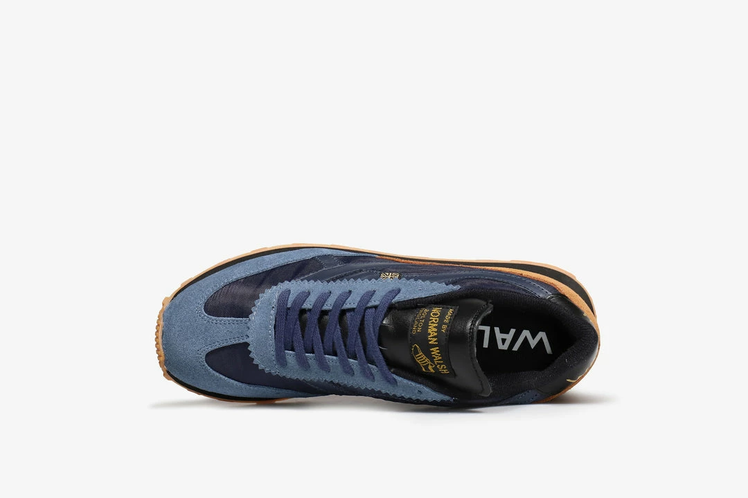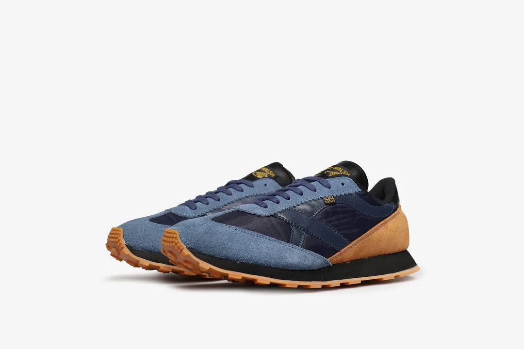 Walsh are back with their latest drop and take the opportunity to introduce us all to some new styles in the lineup.Β Injecting some more contemporary stylings to the offerings the ‘Fierce Strike’ is an angled wedge-like runner with a satisfyingly sharp profile. Constructed from a nylon base that sees premium suede cuts layered atop. A bespoke ‘vintage styled’ tongue patch label nods to Walsh’s strong heritage in producing running footwear and just like those styles from Yesteryear these are all assembled in Bolton England as they have been since day 1 .